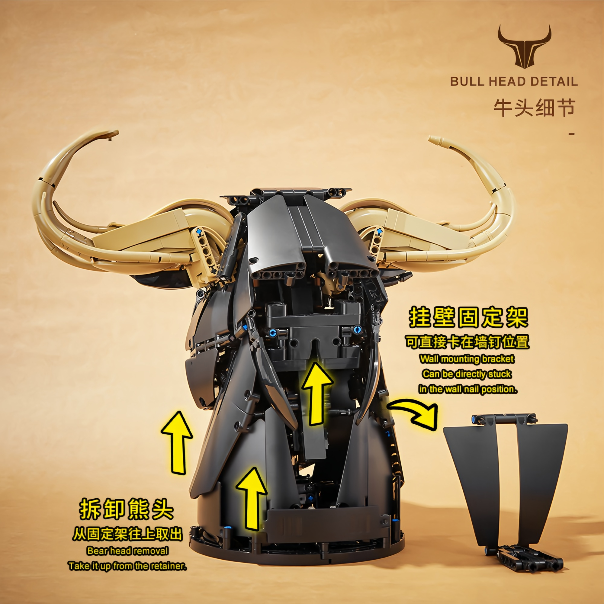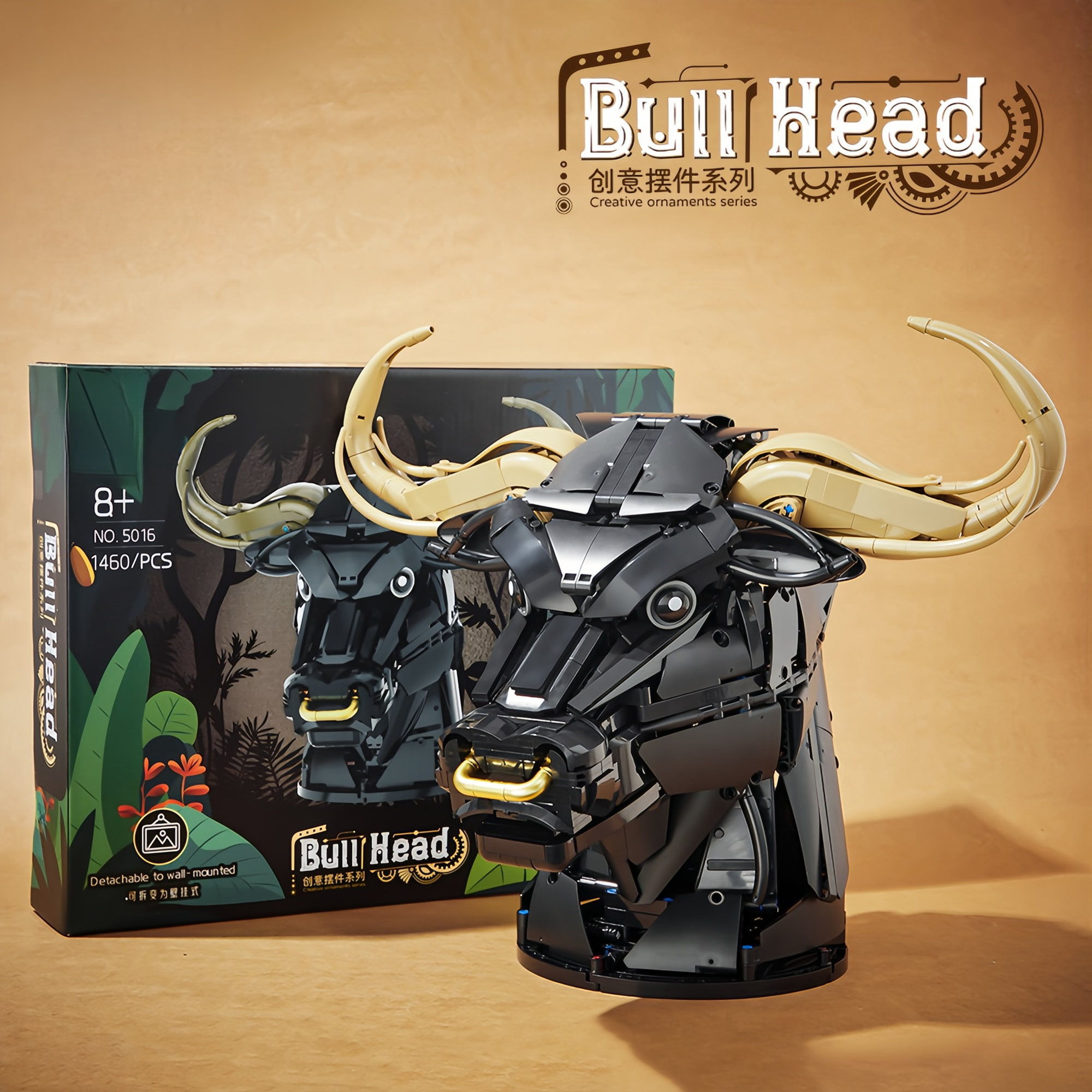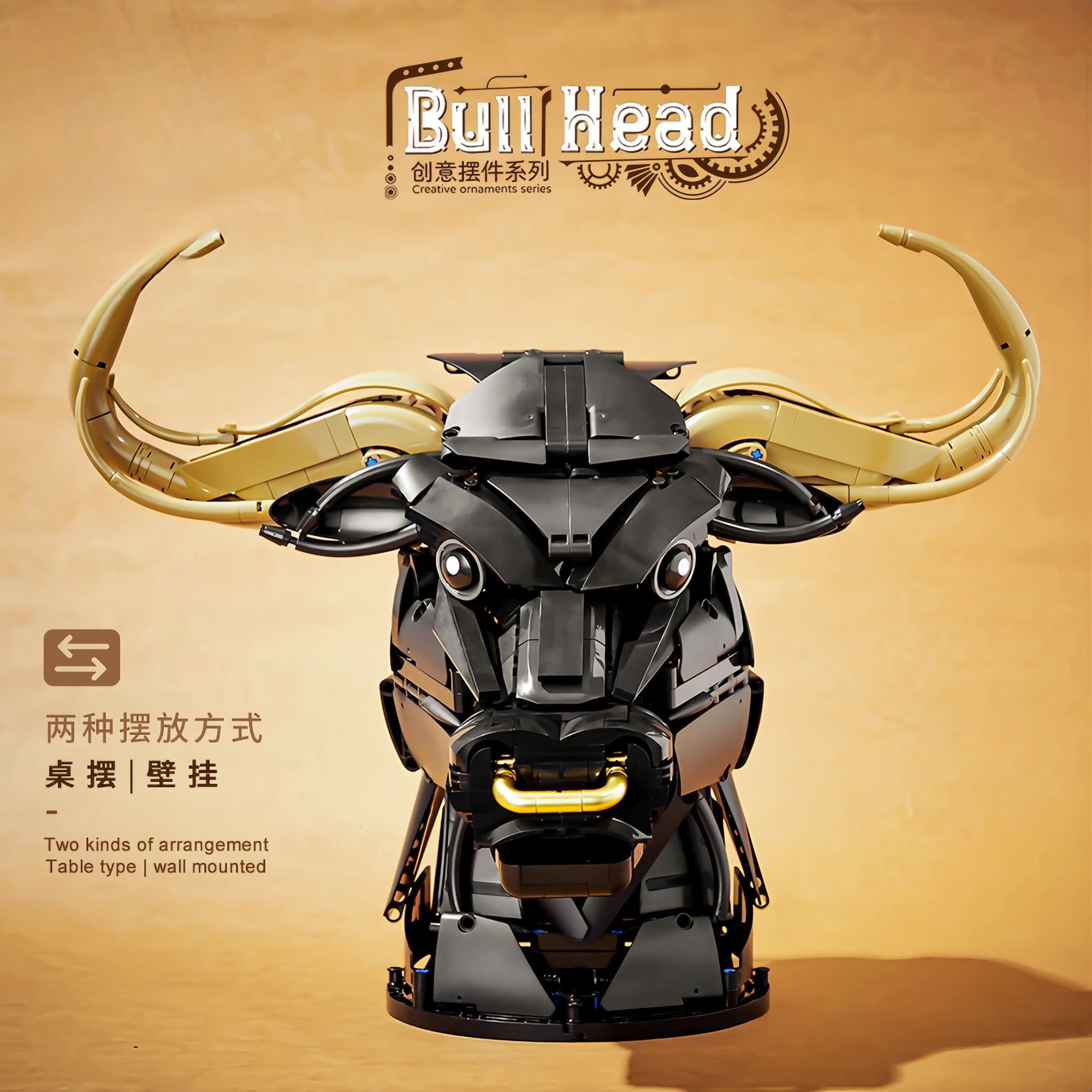 Bull Head Building Blocks Wall Decor – Creative Animal Model Kit
